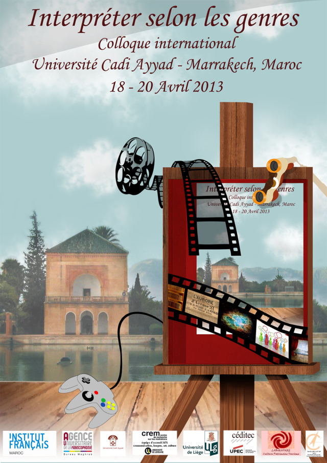 DELAPORTE Chloé, « Genres vs auteurs : lutte des classes et choix stratégiques en études cinématographiques », colloque international du laboratoire « Culture, Patrimoine et Tourisme » (Université Cadi Ayyad, Marrakech), du pôle Praxitexte du CREM (Université de Lorraine), du CEDITEC (Université de Paris-Est Créteil) et du laboratoire « Sciences du langage et Rhétorique » (Université de Liège), Interpréter selon les genres, Marrakech, 18-20 avril 2013