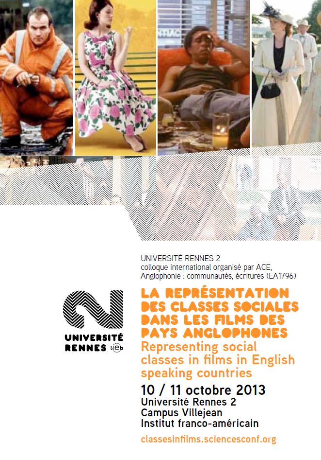 DELAPORTE Chloé, « Les rapports de classe comme marqueurs génériques dans les fictions états-uniennes », colloque international de l’Axe Civilisation Britannique (Université Rennes 2) et du 3LAM (Universités du Maine et d’Angers), La représentation des classes sociales dans les films sur les petit et grand écrans dans les pays anglophones, Rennes, 10-11 octobre 2013