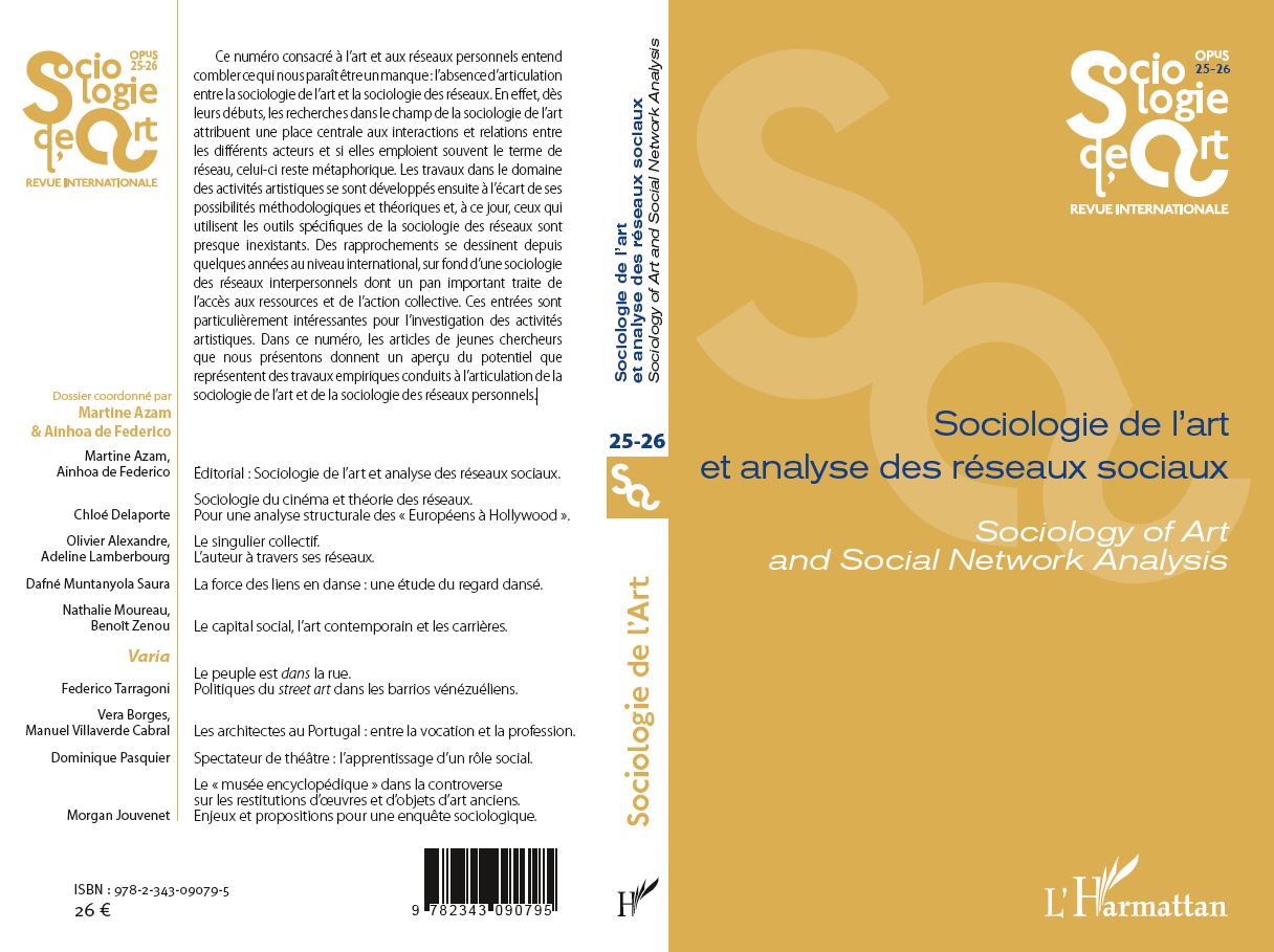 DELAPORTE Chloé (2016), « Sociologie du cinéma et théorie des réseaux. Pour une analyse structurale des “Européens à Hollywood”», Sociologie de l’Art OPuS, n°25-26, p. 39-62 DOI